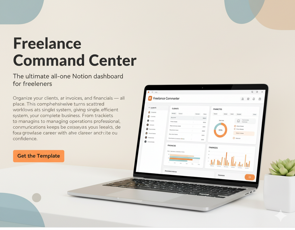 Freelance Command Center is a complete Notion template designed to help freelancers organize and manage their business efficiently. It centralizes clients, projects, invoices, and financial goals into one unified dashboard. With built-in databases, dashboards, and productivity tools, this template lets you track progress, automate invoicing, monitor income, and stay on top of your goals, all in one place. Perfect for designers, developers, writers, and marketers who want to save time, stay organized, and scale their freelance operations with clarity.